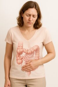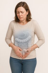 腸が物理的にねじれていることで、便の通りが悪くなってしまうタイプです。特に女性に多く、骨盤の形状や筋力の低下などが関係しているといわれています。主な特徴は、子どものころから便秘体質であること、腹痛を伴うことが多いこと、便秘のあとに下痢になるといった点です。腸がねじれることにより、便の通過が一時的に止まりやすく、排便が不規則になりやすい傾向があります。改善には、腸に負担をかけない姿勢での排便や、腹部のマッサージなどが有効とされています。